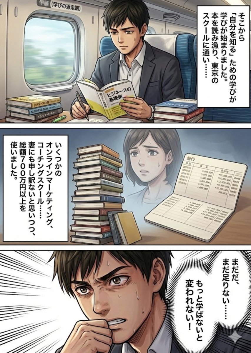 【学べば変われると思っていた。でも現実は…】 今回のマンガは、まさに私が「学び迷子」になっていた頃の話です。 教員を辞め、「自分を知る」「ビジネスを学ぶ」と決めてから、とにかく本を読み、スクールに通い、新幹線で東京に通いました。 気づけば机には本の山。 通帳の数字はどんどん減り。 pic.x.com/NicaHxofpq x.com/Lstep_kazu/sta…